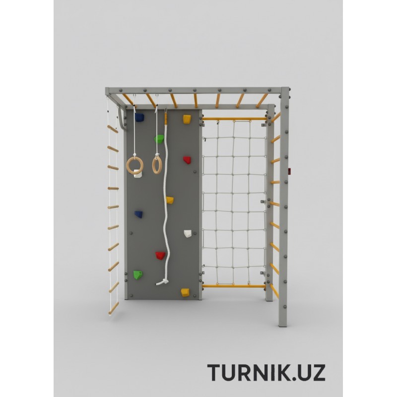 Полная Комплектация: Несмотря на компактность, комплекс включает в себя все ключевые элементы: сетку, скалодром и рукоход.