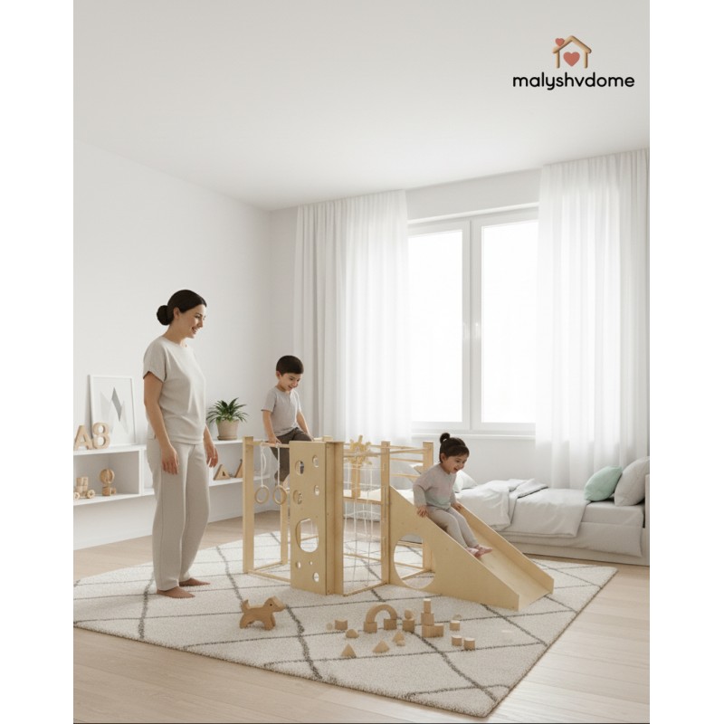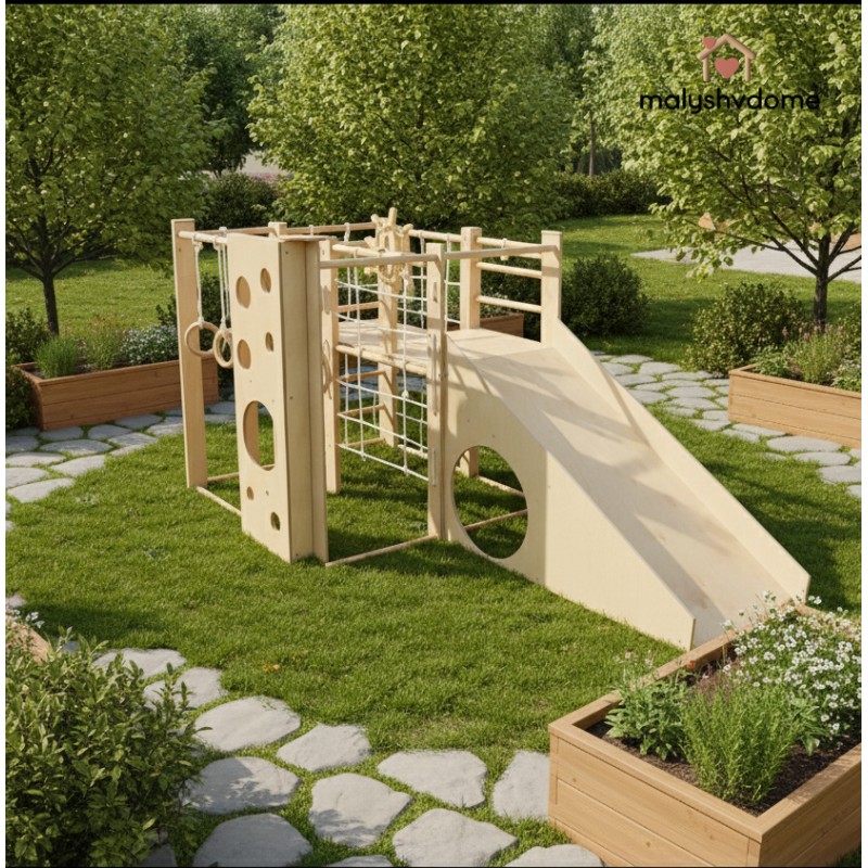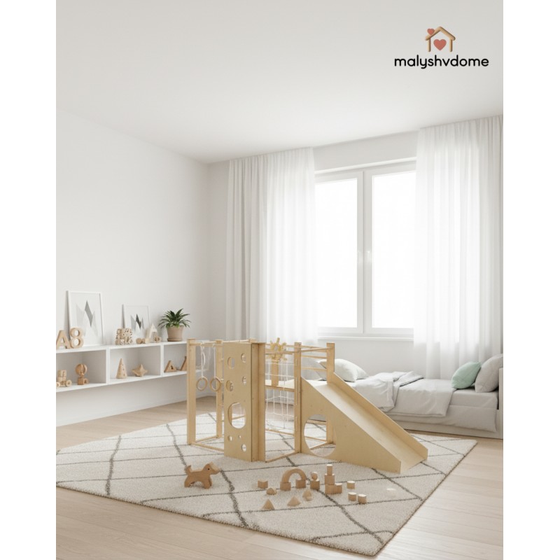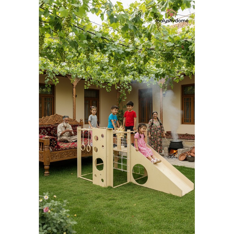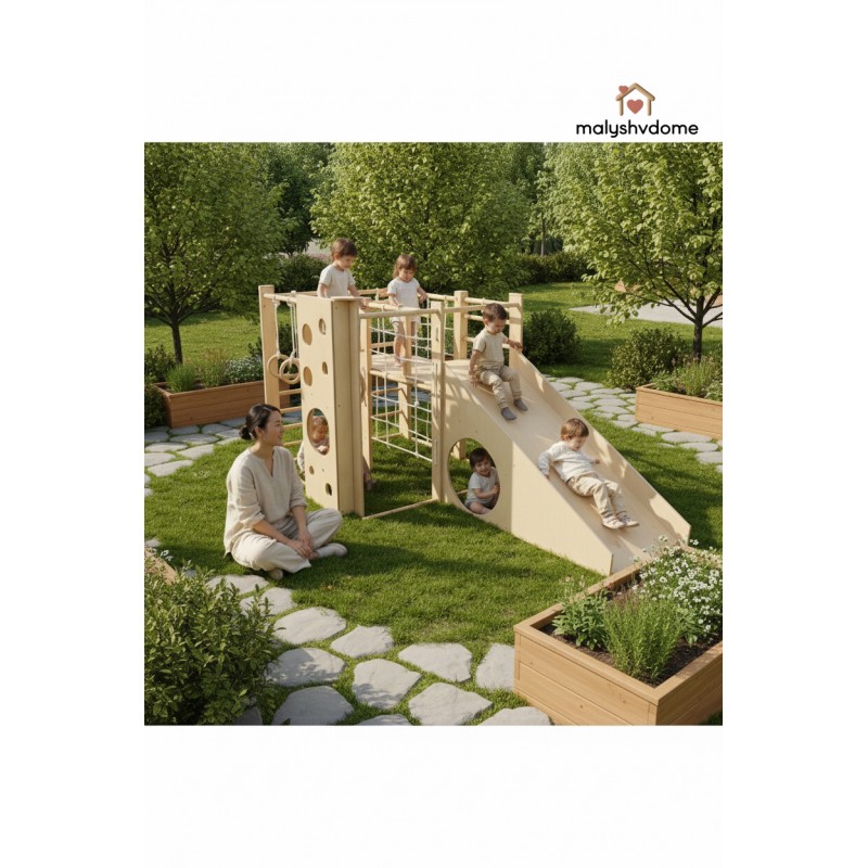 Представляем вашему вниманию грандиозный деревянный игровой комплекс "Форт" – настоящий замок для отважных искателей приключений! Этот комплекс, разработанный для активных игр и полноценного физического развития, станет эпицентром веселья и фантазии в любом пространстве – от просторной детской комнаты до уютной дачной поляны.