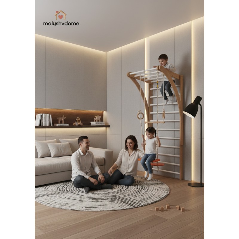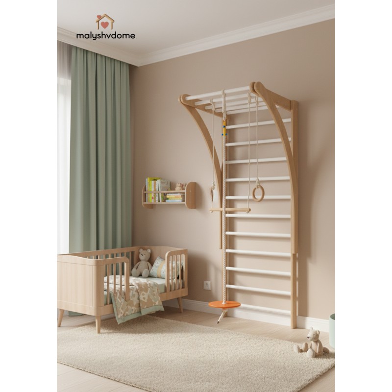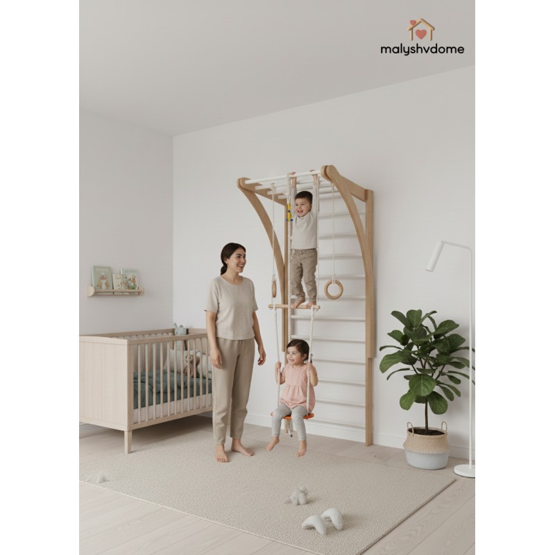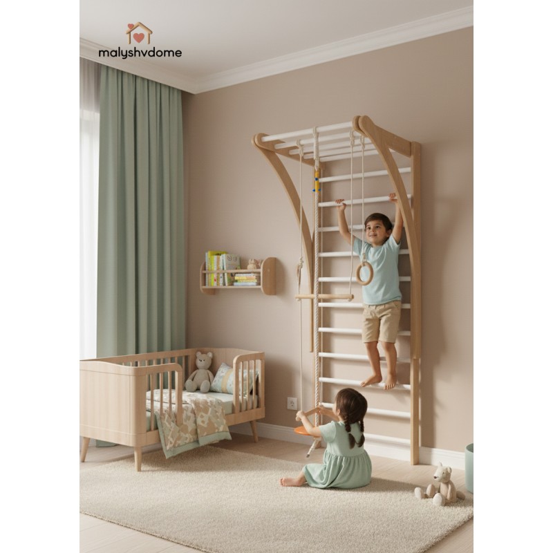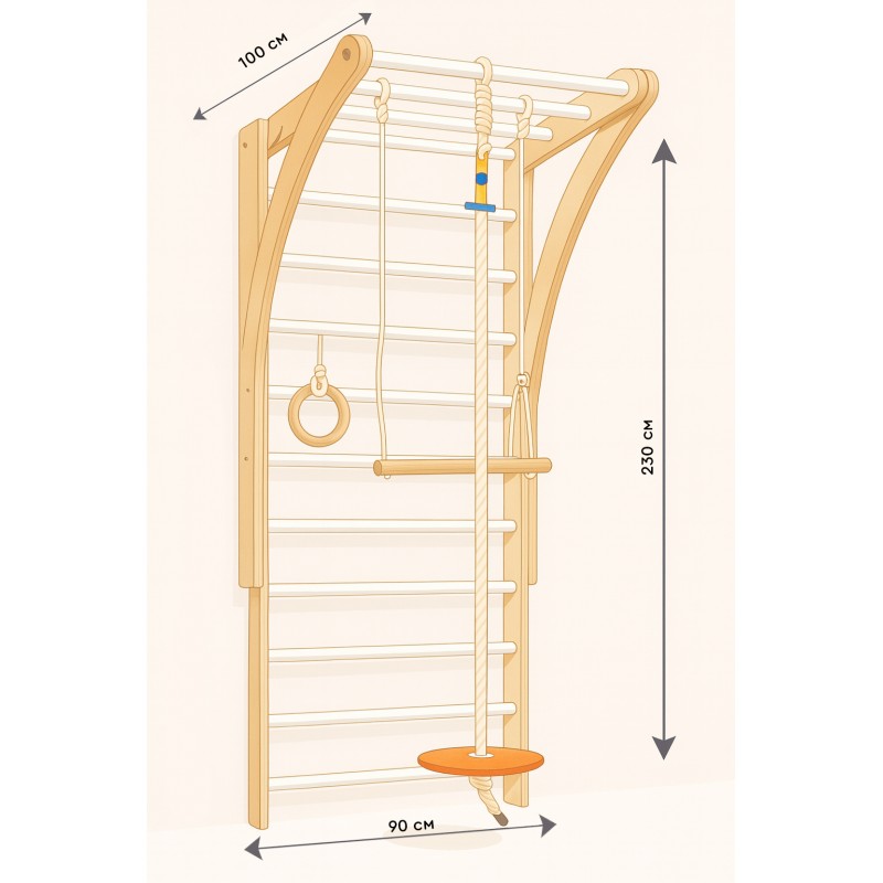 Игровой комплекс "Радуга" — это идеальное решение для активного и гармоничного развития вашего ребенка прямо у вас дома. Созданный из натурального дерева, этот компактный и многофункциональный комплекс станет любимым местом для игр и физических упражнений детей до 12 лет.