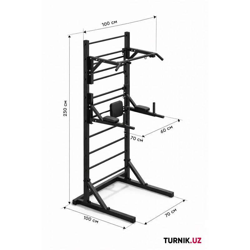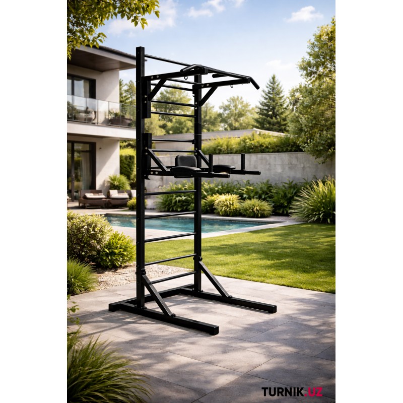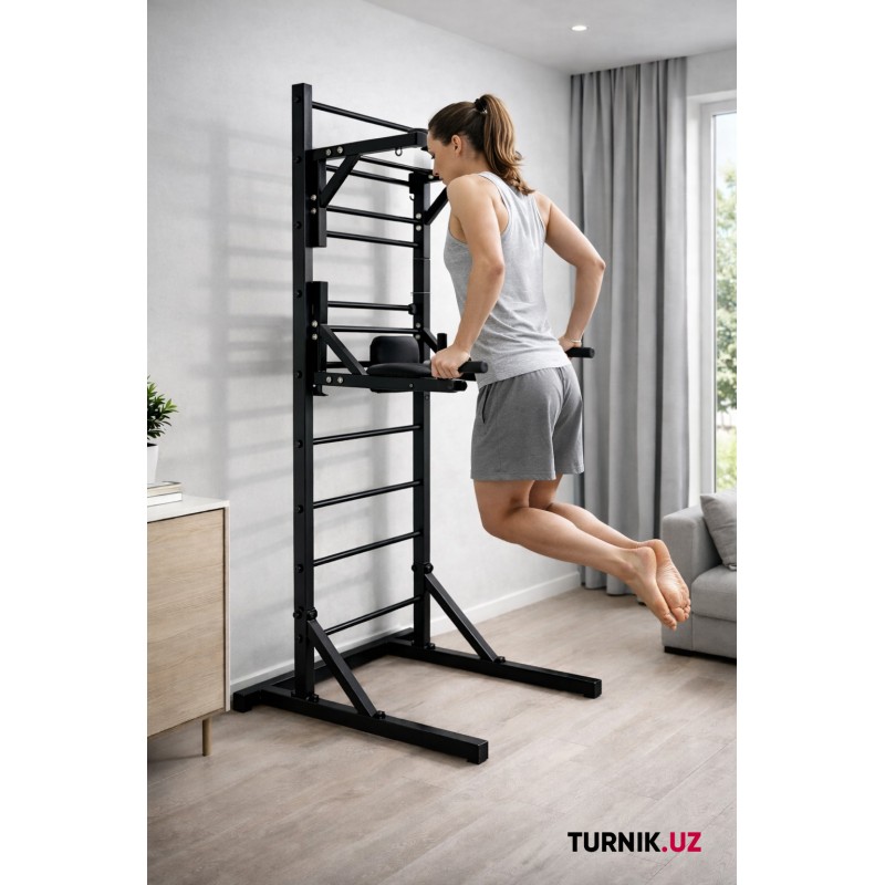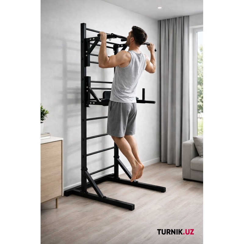 Flash — это надёжный домашний спортивный комплекс, разработанный для эффективных тренировок в квартире или частном доме. Конструкция объединяет турник, брусья и шведскую стенку, позволяя выполнять широкий спектр упражнений: подтягивания, отжимания, упражнения на пресс и общефизическую подготовку.
