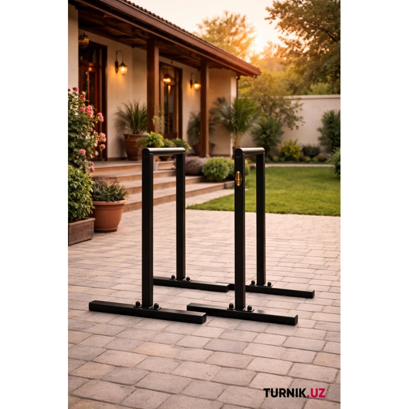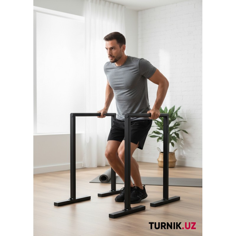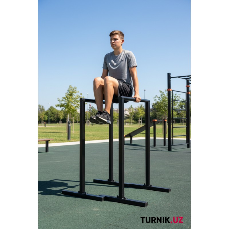 Высота 100 см позволяет выполнять классические отжимания на брусьях, уголок (L-sit), статические удержания и элементы воркаута.
