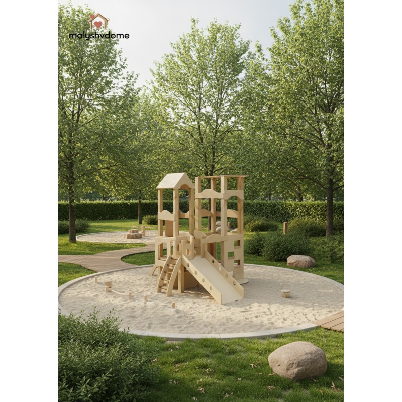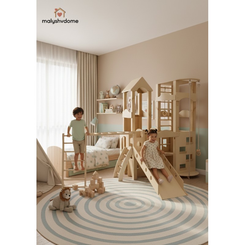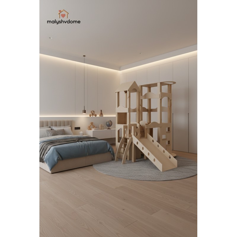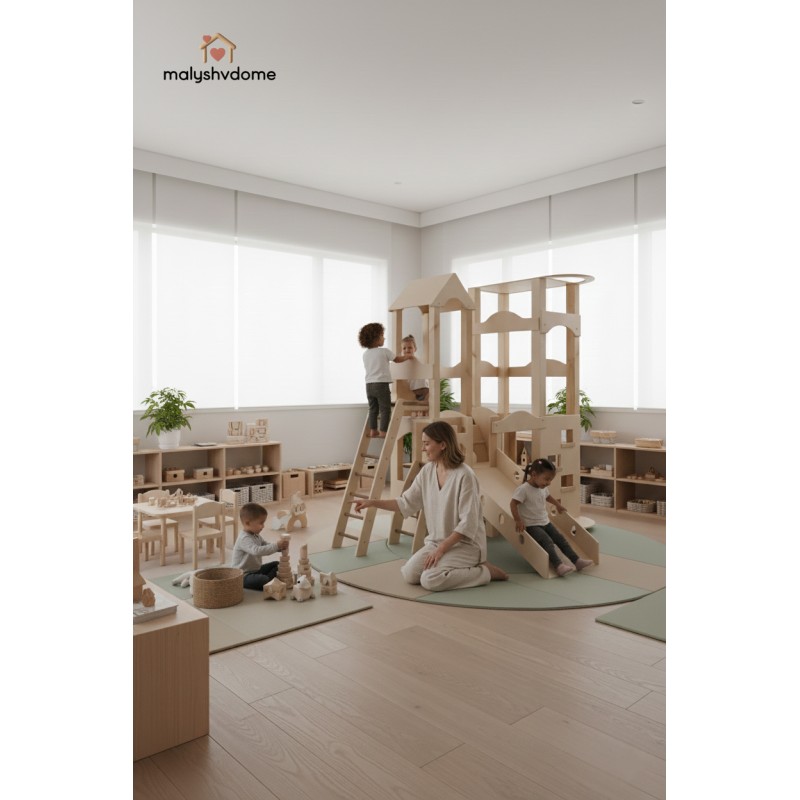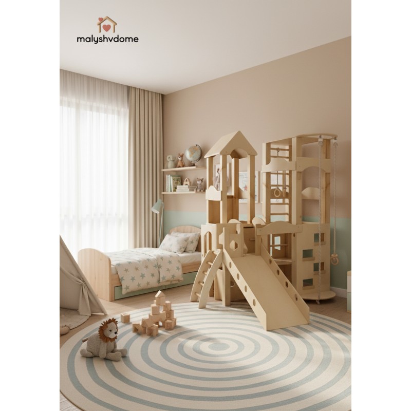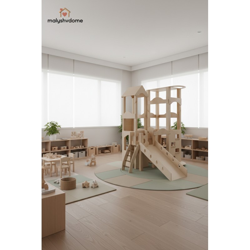 Деревянный игровой комплекс "Башня" — это идеальное решение для создания личного развивающего пространства в вашем доме или детском учреждении. Созданный из экологически чистых и натуральных материалов, этот отдельно стоящий комплекс гармонично впишется в любой интерьер — от уютного домашнего до минималистичного скандинавского или премиум-класса.