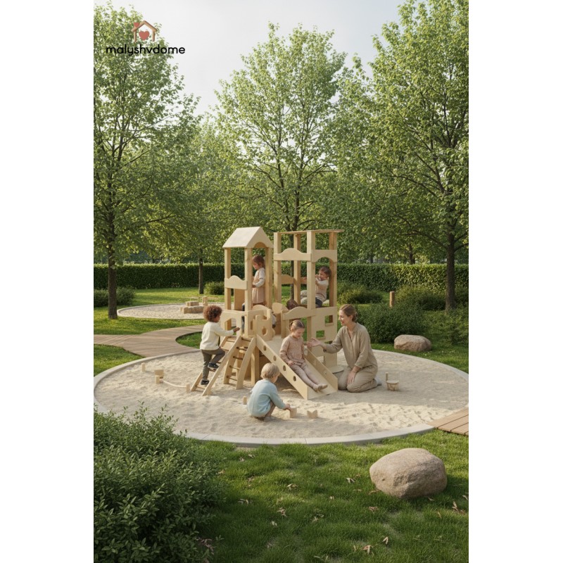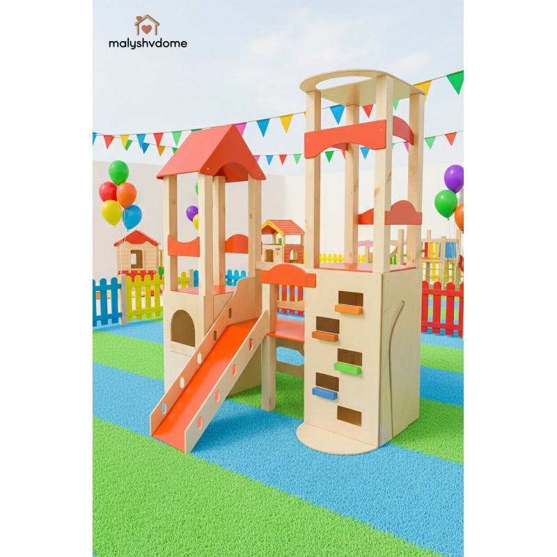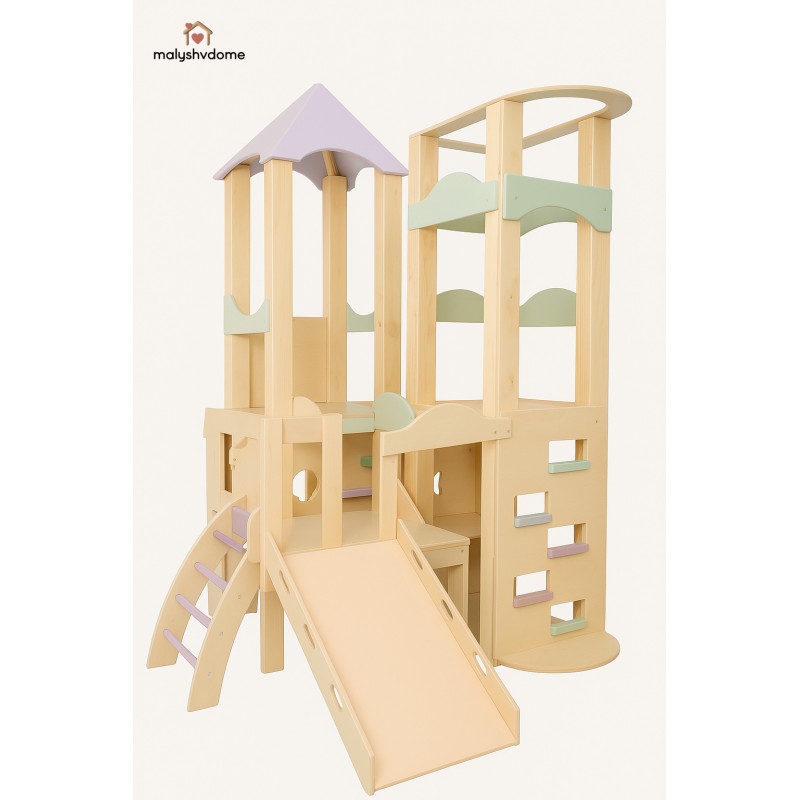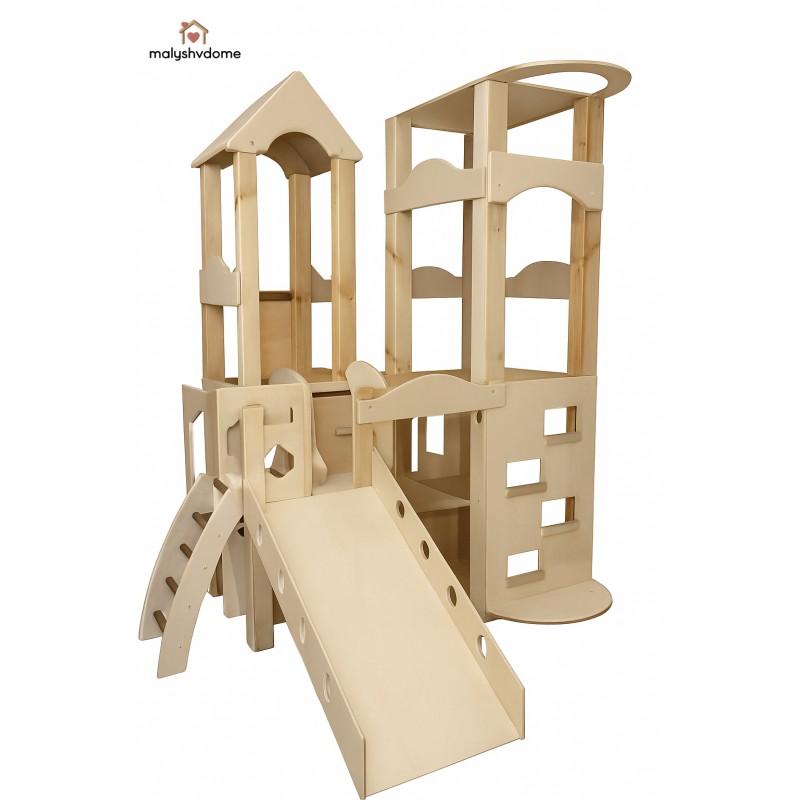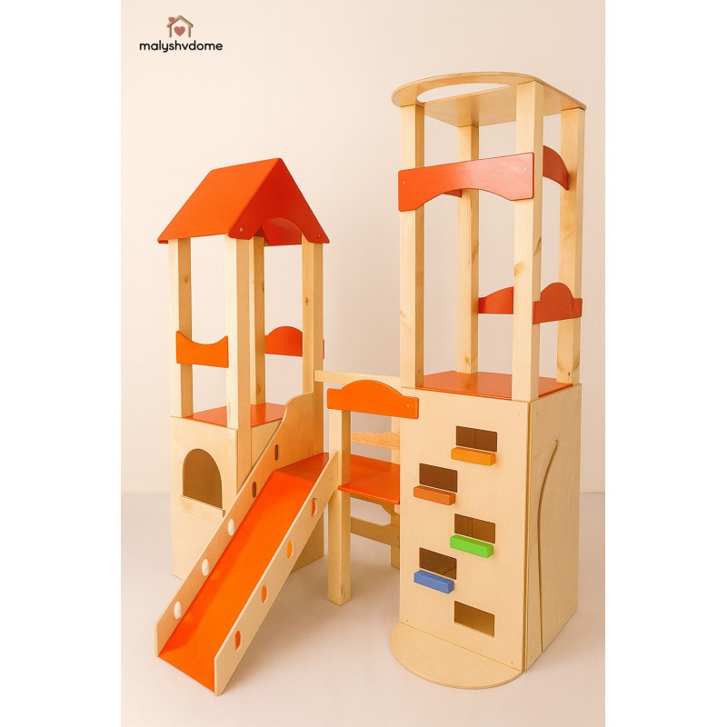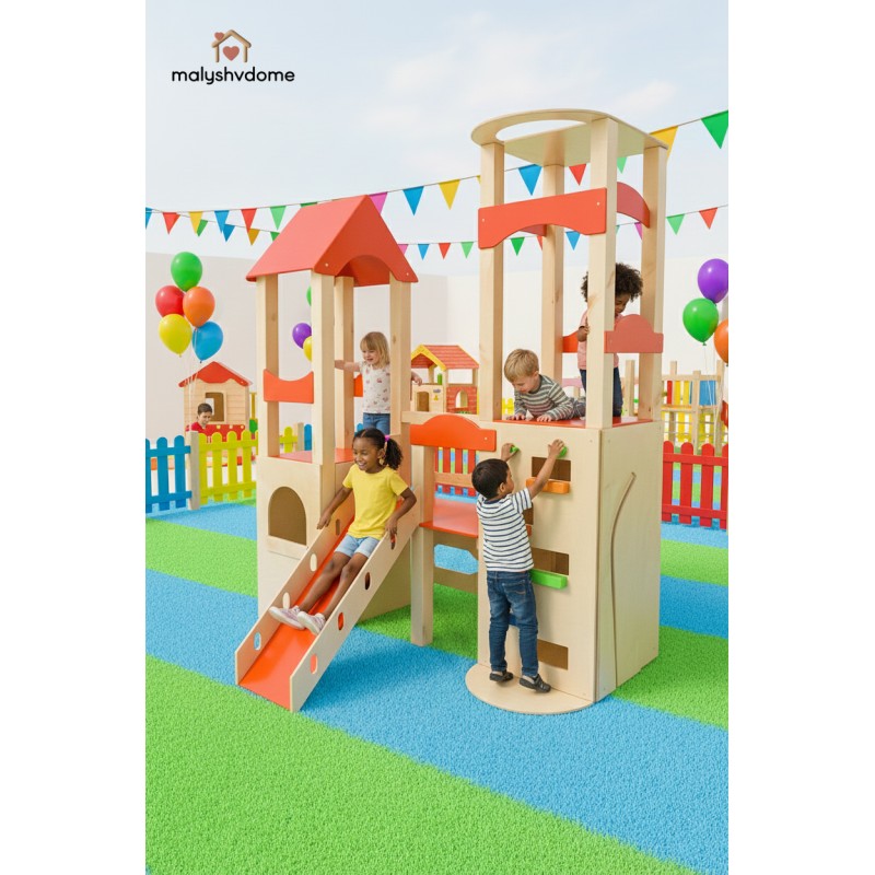 Деревянный игровой комплекс "Башня" — это идеальное решение для создания личного развивающего пространства в вашем доме или детском учреждении. Созданный из экологически чистых и натуральных материалов, этот отдельно стоящий комплекс гармонично впишется в любой интерьер — от уютного домашнего до минималистичного скандинавского или премиум-класса.