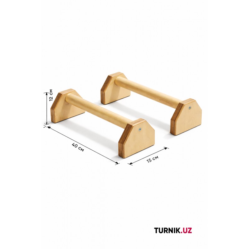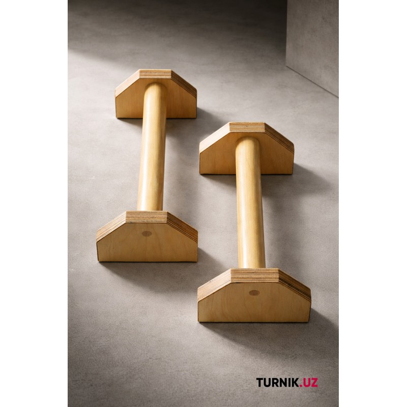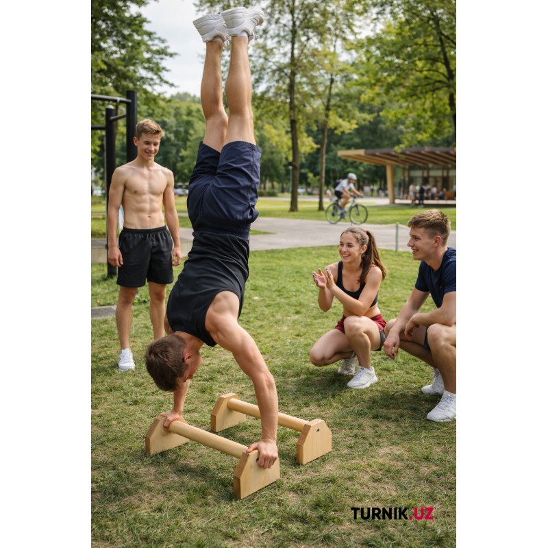 Паралетсы изготовлены из натурального дерева — тёплый материал приятен для рук, не скользит и обеспечивает уверенный хват без мозолей.