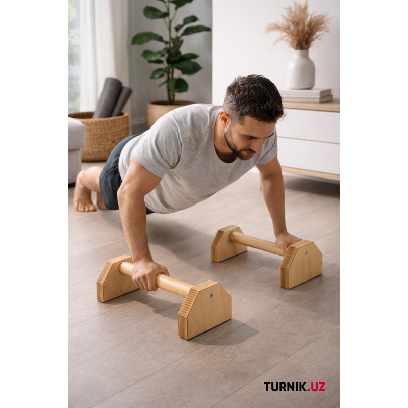 Большие деревянные паралетсы — универсальный снаряд для силовых тренировок и калистеники дома.