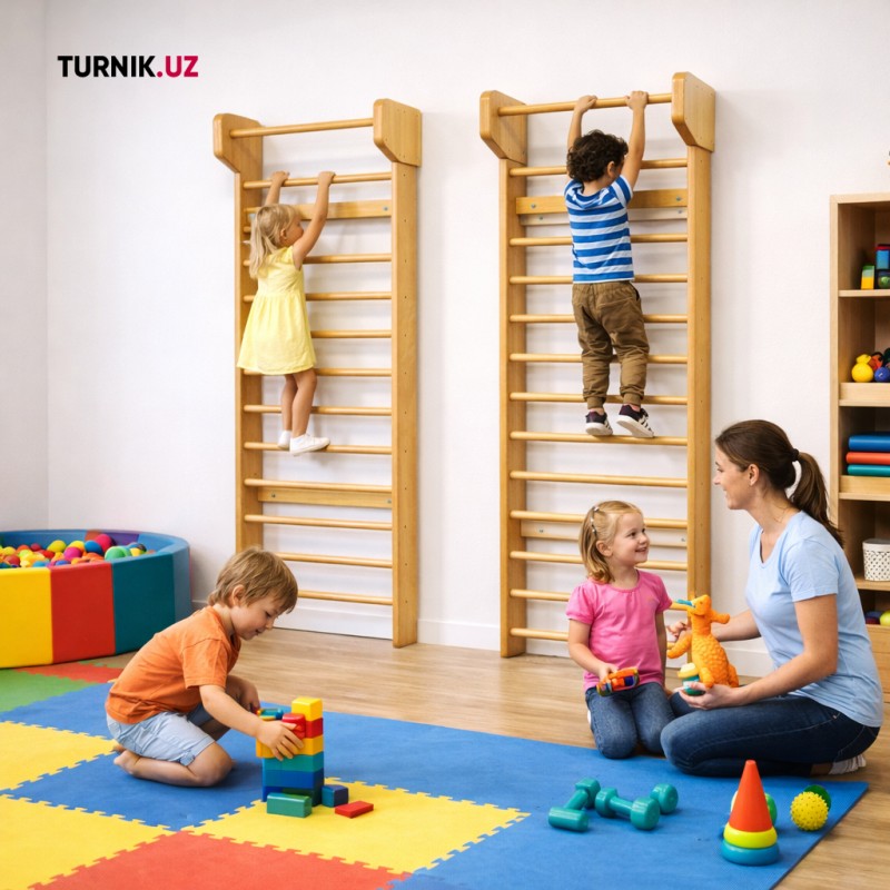 Шведская стенка “Стандарт” из дерева — практичное решение для дома и организаций в Узбекистане. Её выбирают для домашних тренировок, школьных спортзалов, детских садов, секций гимнастики и балета, а также для кабинетов ЛФК и реабилитации. Размер 220×60 см позволяет удобно разместить стенку вдоль стены и использовать для упражнений на растяжку, укрепление спины, развитие координации и коррекцию осанки. Мы — производитель, поэтому предлагаем надёжную сборку и стабильное качество. Если вы ищете шведскую стенку в Ташкенте или по Узбекистану для дома, школы или спортзала — “Стандарт” закрывает основные задачи тренировки и реабилитации.