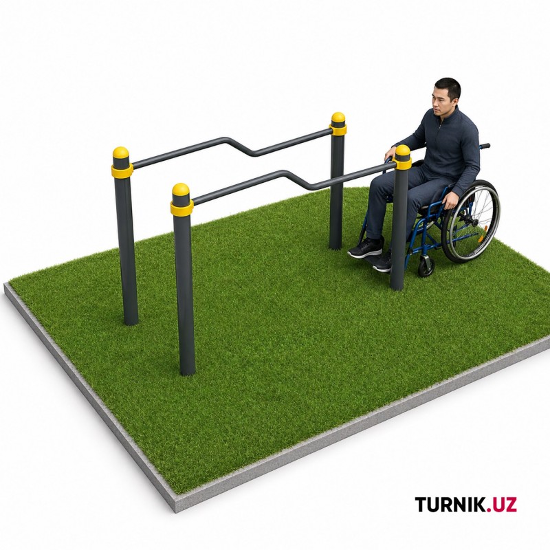 инклюзивные брусья, брусья для инвалидов, брусья для колясочников, workout инвалид, воркаут для инвалидов, спортивная площадка для инвалидов, инклюзивная площадка, оборудование для реабилитации, street workout Uzbekistan, тренажер для парка, доступная среда, workout Uzbekistan, спорт для колясочников, уличные брусья, инклюзивный workout