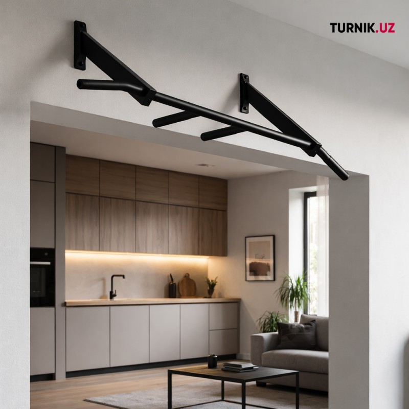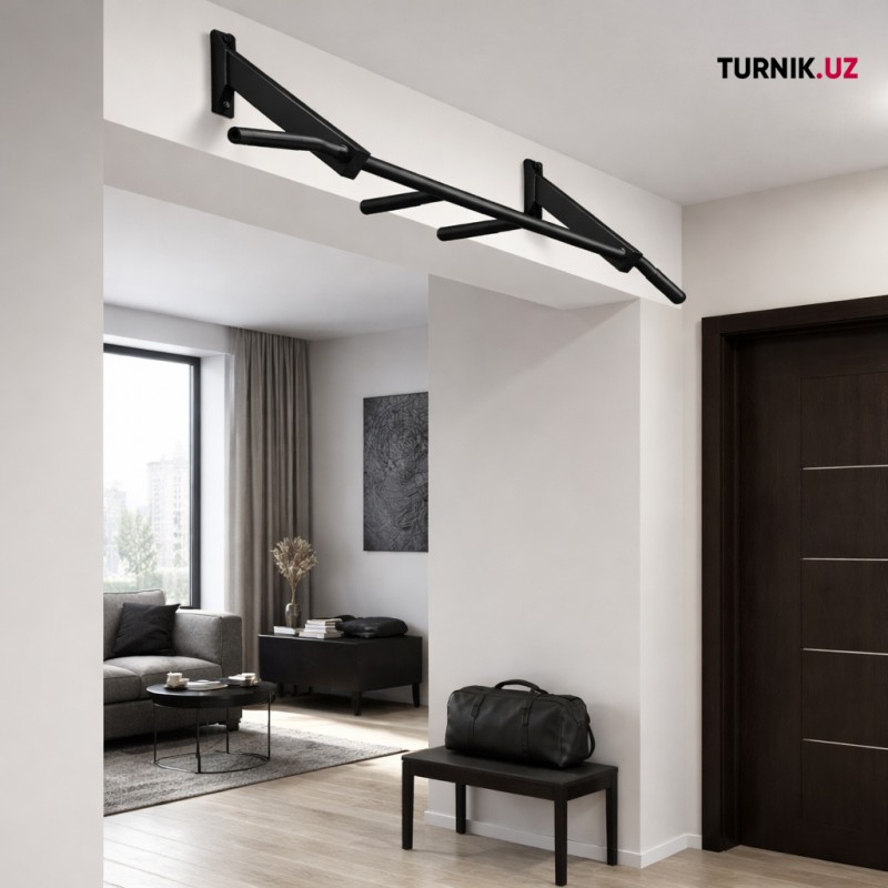 Конструкция разработана для эффективных тренировок в ограниченном пространстве. Турник легко интегрируется в интерьер квартиры, офиса или домашнего спортзала и позволяет выполнять базовые упражнения для развития силы верхней части тела.