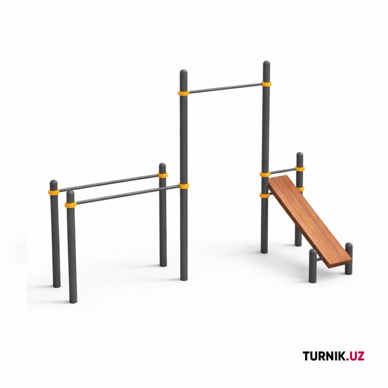 Данный спортивный комплекс дает возможность выполнять любые упражнения для пресса, а также традиционные для воркаута подтягивания, скручивания и подъемы, эффективно заниматься с собственным весом.