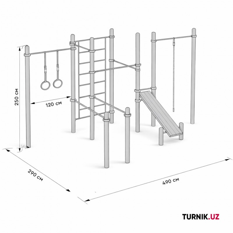 Данный спортивный комплекс дает возможность выполнять любые упражнения для пресса, а также традиционные для воркаута подтягивания, скручивания и подъемы, эффективно заниматься с собственным весом.